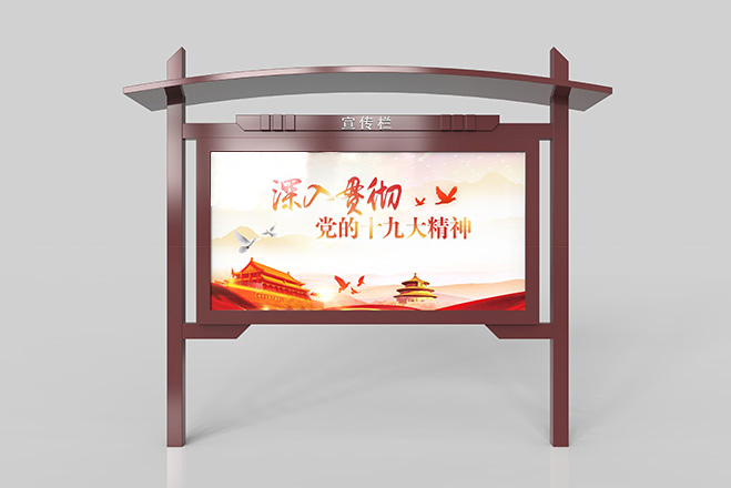 宣傳欄是一種VI應(yīng)用,是組織或企業(yè)單位等進(jìn)行自我宣傳的有效手段,常被應(yīng)用于街道,工廠等公共場所;一般采用不銹鋼為框架,鋼化玻璃或者耐力板為面板,鋁合金為頂棚,面板可以打開更換宣傳畫面?,F(xiàn)如今,宣傳欄廣泛應(yīng)用于學(xué)校、小區(qū)、會議館、展廳等各個場地。